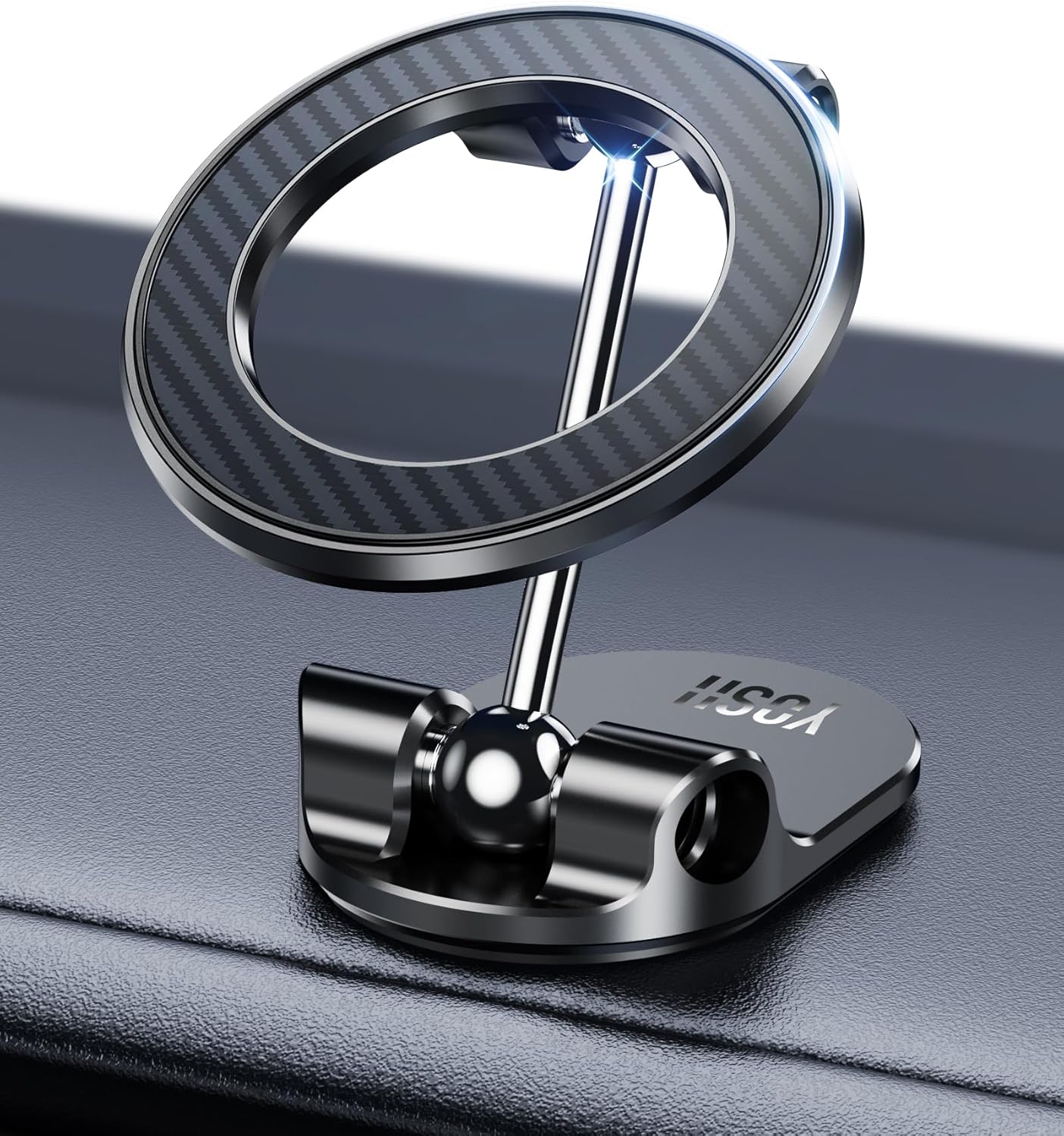 Le YOSH Mag-Safe Support magnétique s’adresse à qui veut une solution simple et stable pour poser son iPhone sur le tableau de bord. YOSH Mag-Safe mise sur un design pliable et une rotule à 360 degrés pour ajuster l’angle en quelques gestes. Le collage repose sur un adhésif 3M réputé pour sa tenue, livré avec deux pads de remplacement pour changer la position sans devoir racheter le support. L’ensemble promet durabilité et finition soignée grâce à l’emploi d’alliage et de fibre de carbone, ce qui réduit le poids tout en résistant aux températures élevées. 📱