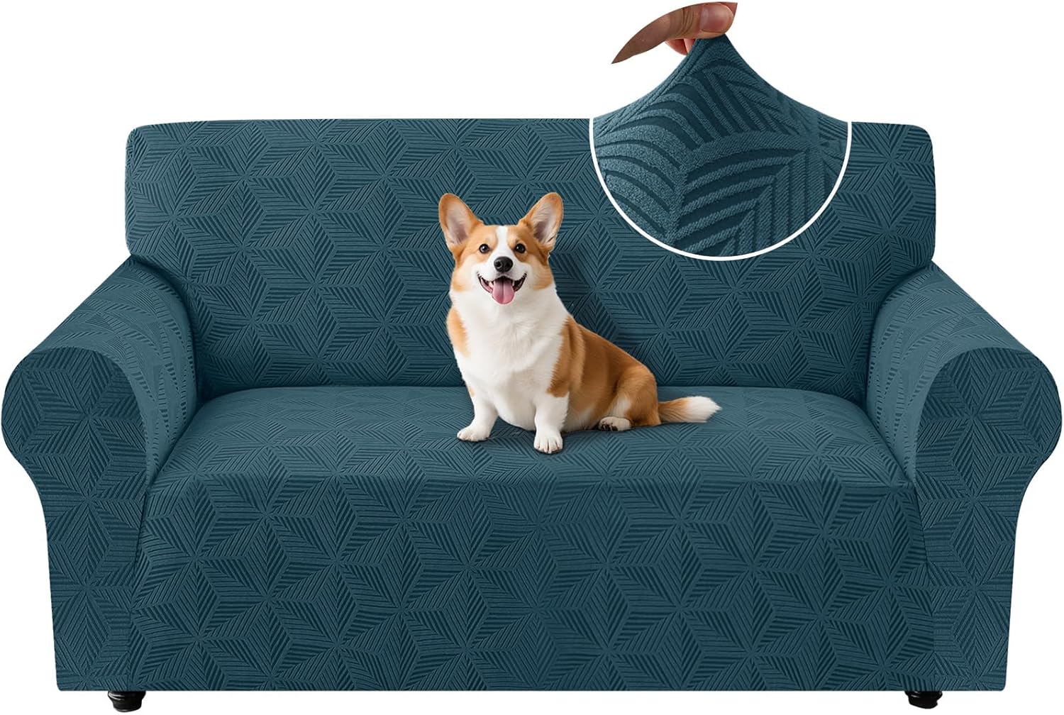 Le motif géométrique irrégulier et le bleu paon donnent un look affirmé. C’est agréable si vous cherchez une housse décorative, pas juste un “cache”. En revanche, si vous aimez les intérieurs très sobres ou si vous voulez un rendu discret et ton sur ton, il se peut que le style prenne trop de place.