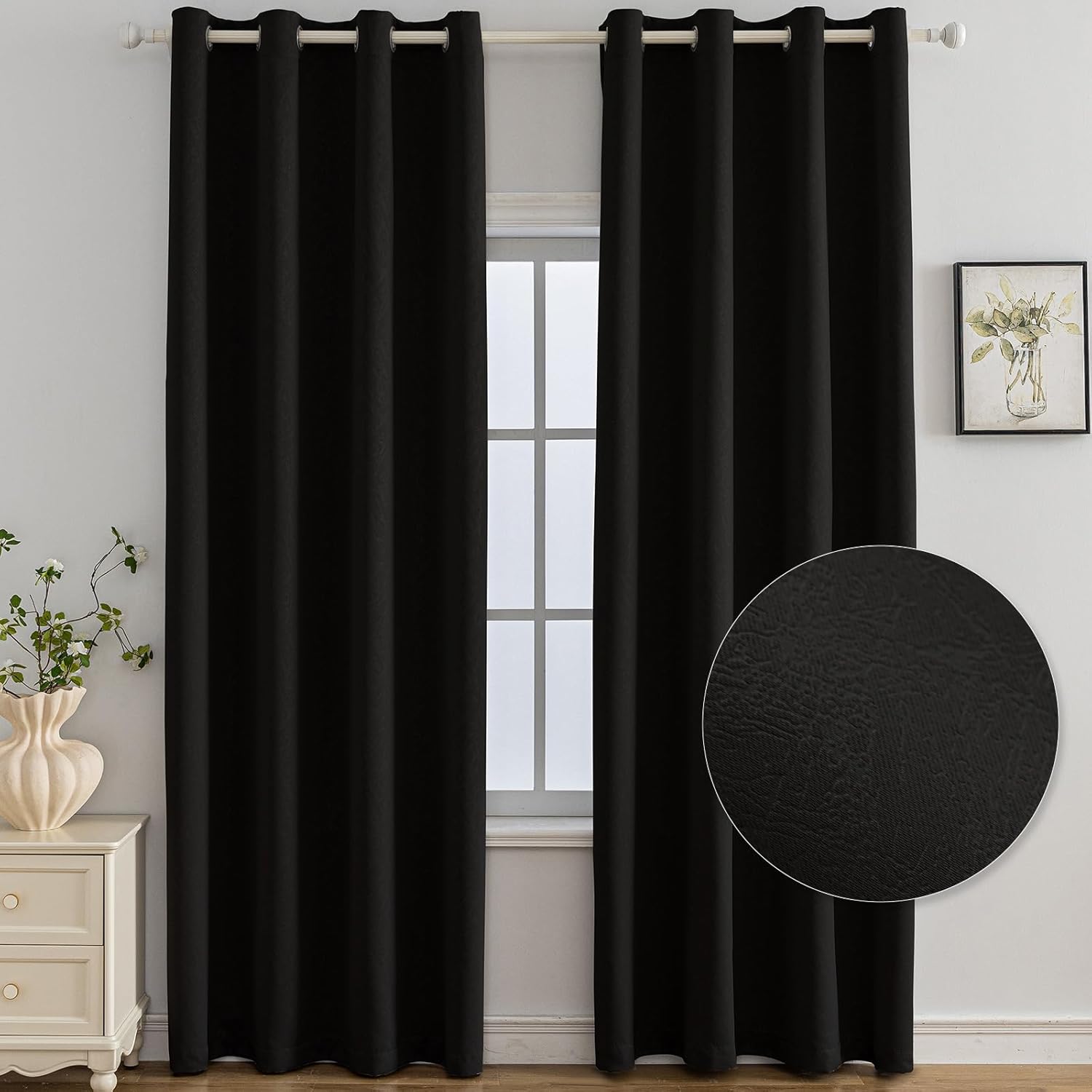 Imagine une chambre en face d’un vis-à-vis ou très exposée : tu fermes les rideaux le soir, et l’ambiance devient plus feutrée. Le motif en gaufrage apporte un rendu décoratif, et la couleur noire aide à limiter la lumière. En journée, tu peux les ajuster pour garder une atmosphère moins agressée par le soleil.