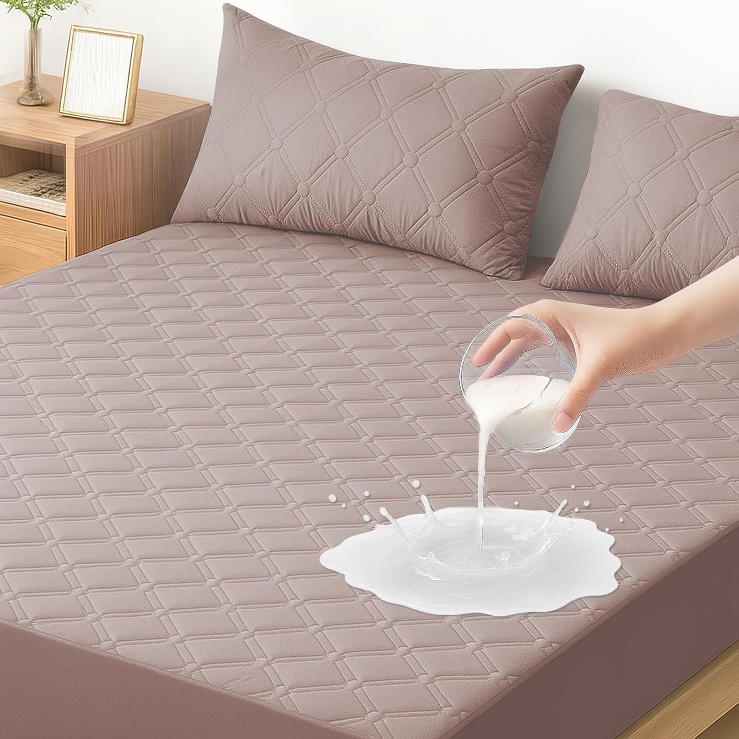 Ystyle protège-matelas imperméable 140x200 cm anti-acariens (jusqu’à 30 cm), matelassé lavable rose