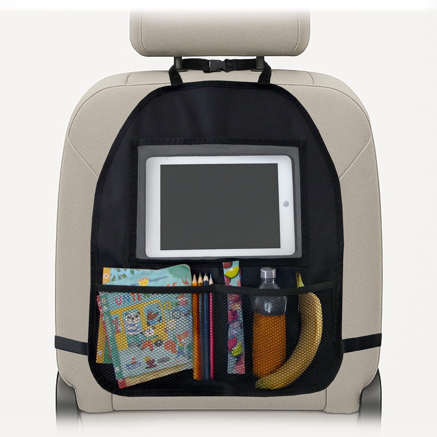 Zamboo Organisateur Voiture Enfant avec pochette tablette (jusqu’à 11") pour protéger le dossier et ranger | Noir