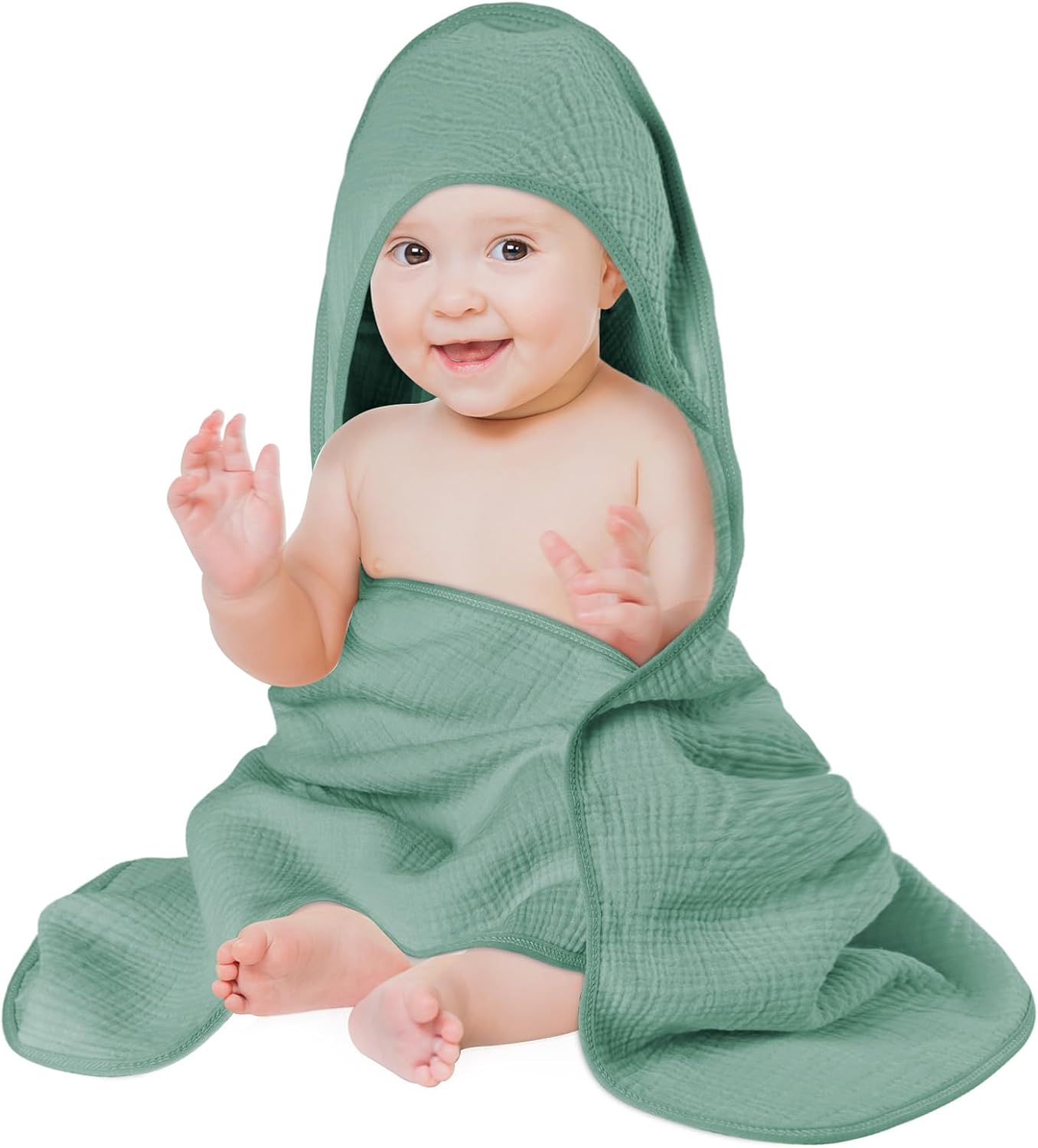 Aolso accappatoio neonato con cappuccio 80x80 cm in crêpe, asciugamano super assorbente verde