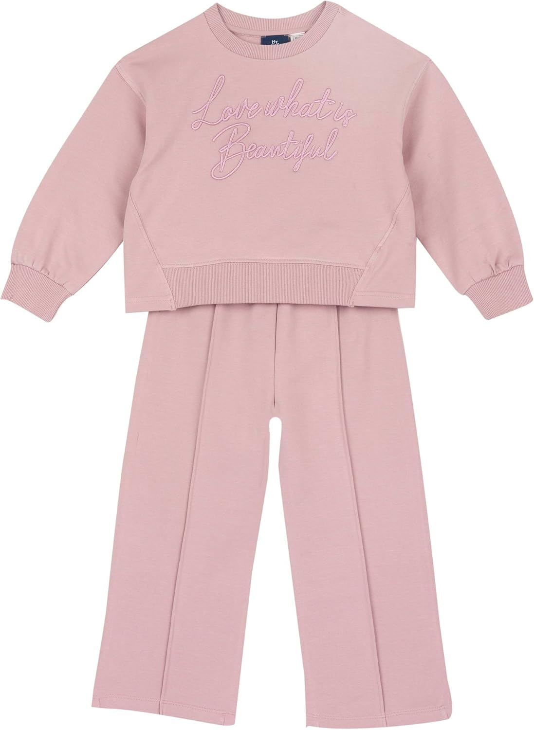 Set Amazon Essentials x Sofia Grainge in spugna: pantaloni e top con fit rilassato per bimba e bambina