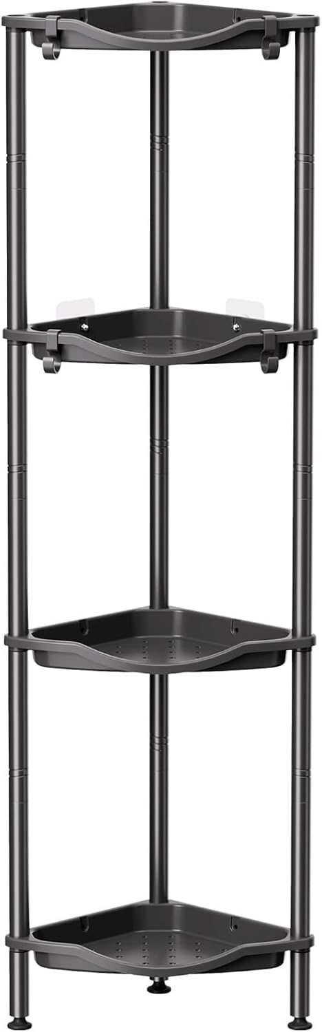 lifewit Mensola Doccia a 4 Livelli senza Foratura con angolo a 90° (34 cm) – organizer nero per sapone, shampoo e accessori