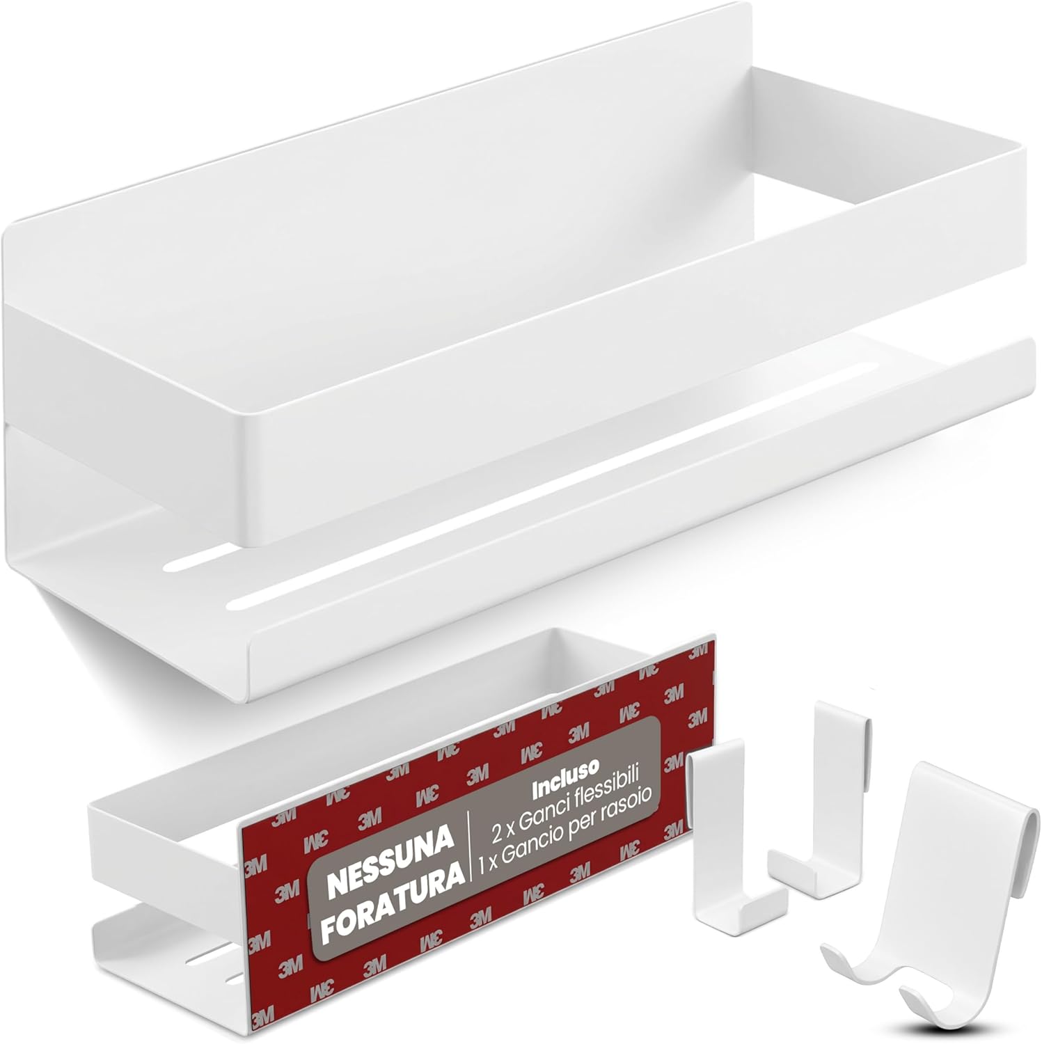 LIEBHEIM mensola doccia in acciaio inox bianco per bagno senza foratura