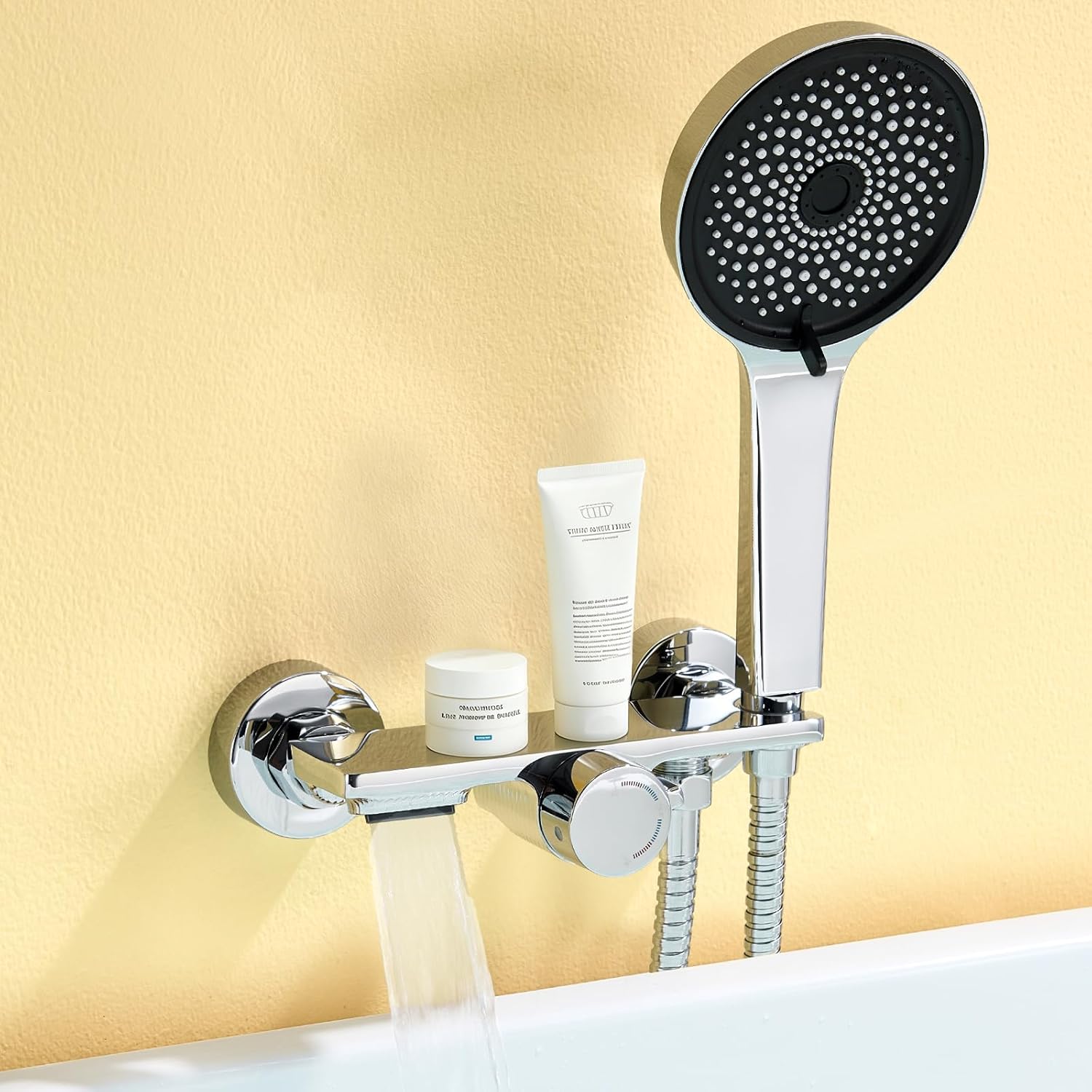Auralum Miscelatore doccia in ottone con porta sapone, soffione 5 funzioni e tubo doccia 1,5 m