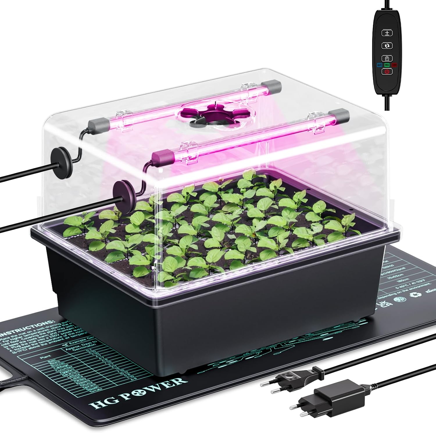 HG Power Mini Serra Germinazione con luci LED e tappeto riscaldante (cupola e va...