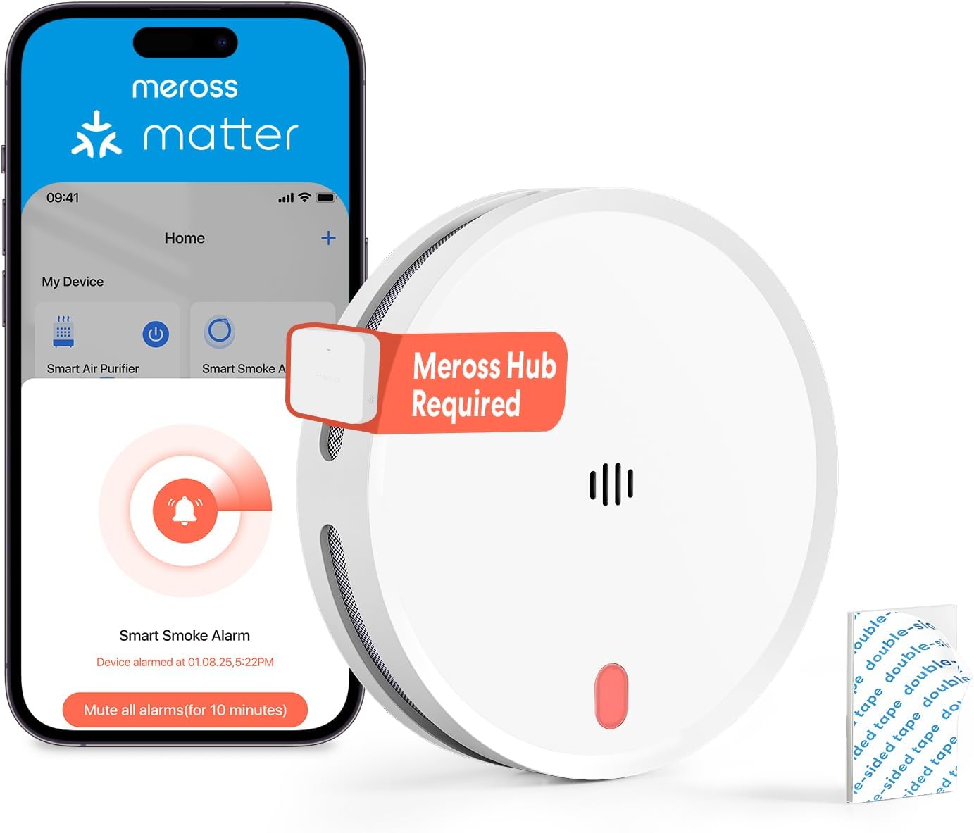 Meross Rilevatore di fumo Wi‑Fi connesso 33 mm
