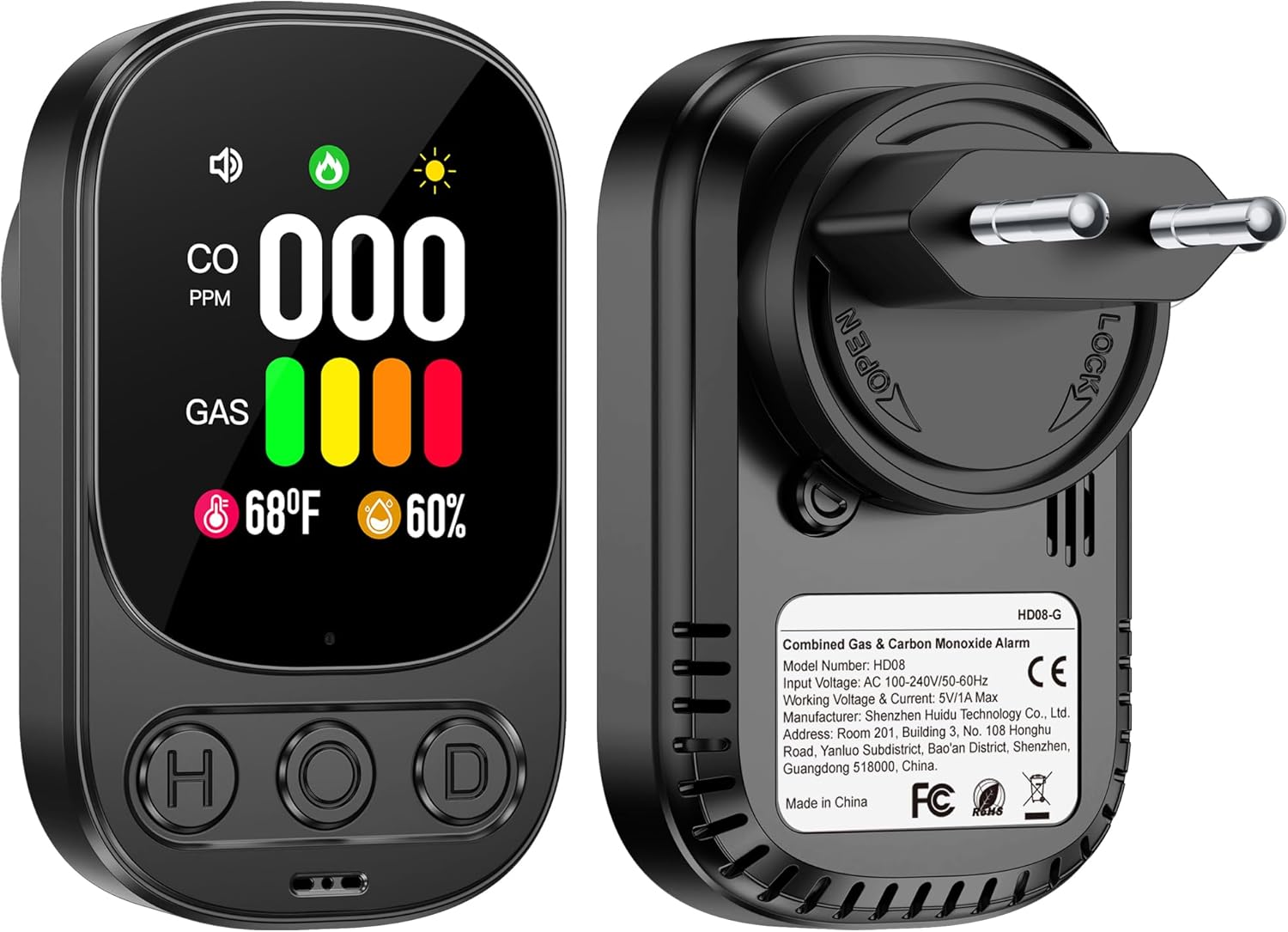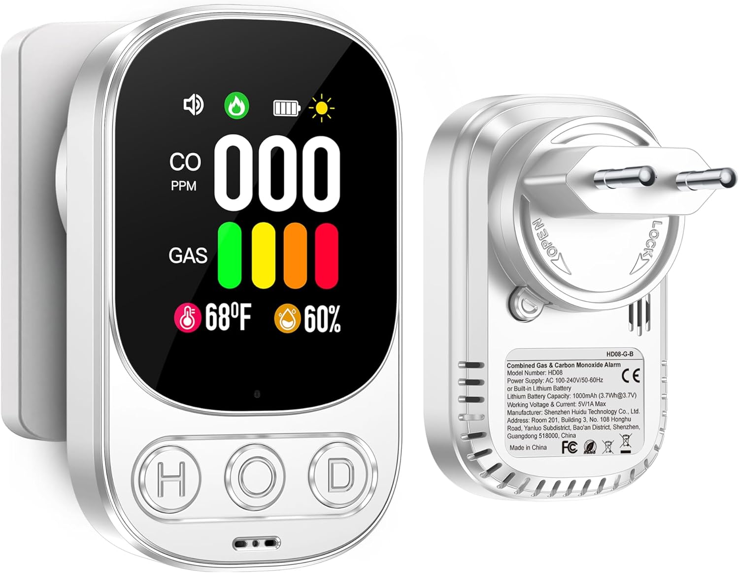 Gedsffati HD08-G Rilevatore di gas e CO con spina 🛡