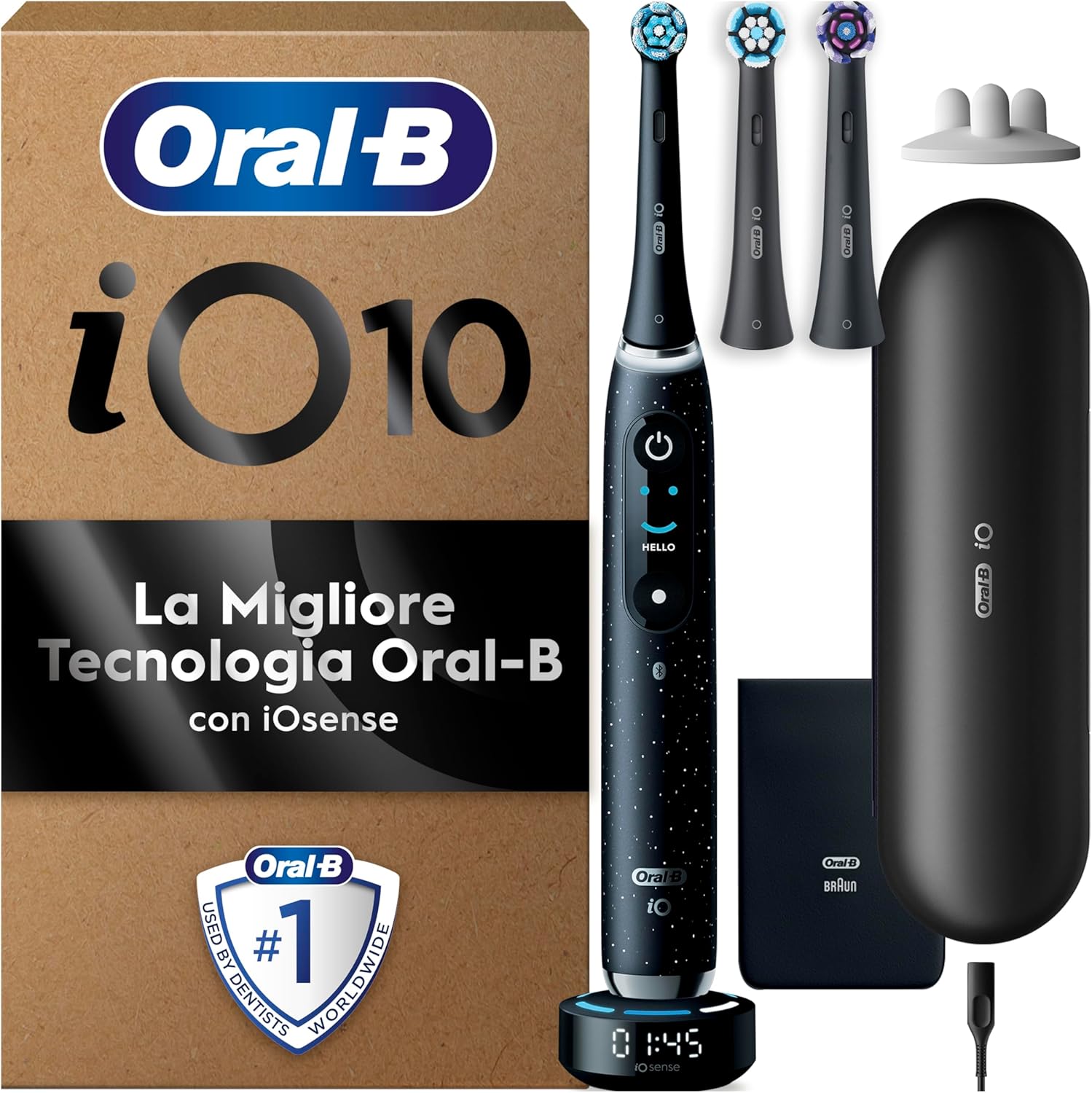 Oral-B spazzolino elettrico ricaricabile iO 10 Nero con tecnologia magnetica e 3 testine