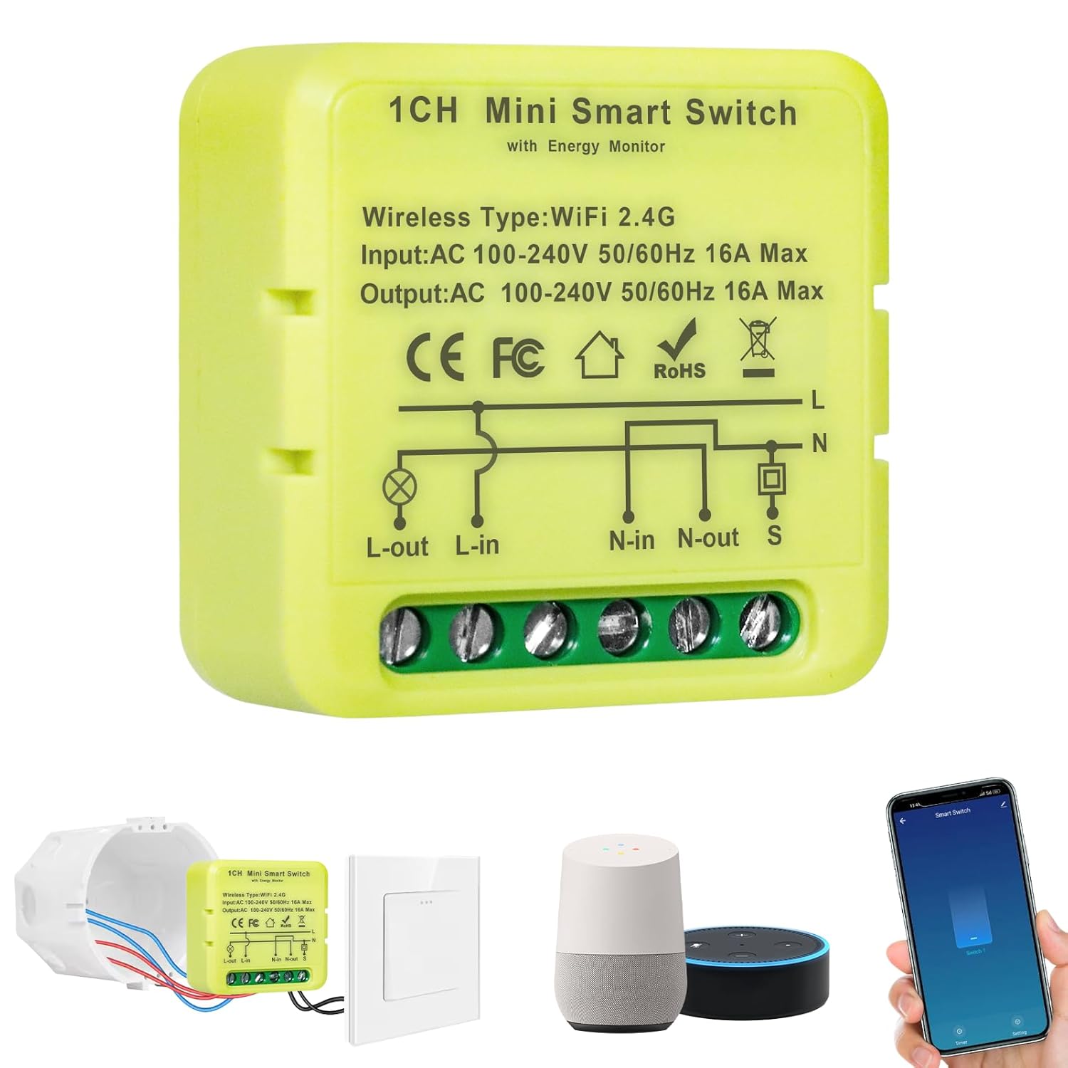 KETOTEK Relè Interruttore Smart WiFi 16A 1 Gang/1-2 vie con Alexa (richiede filo...