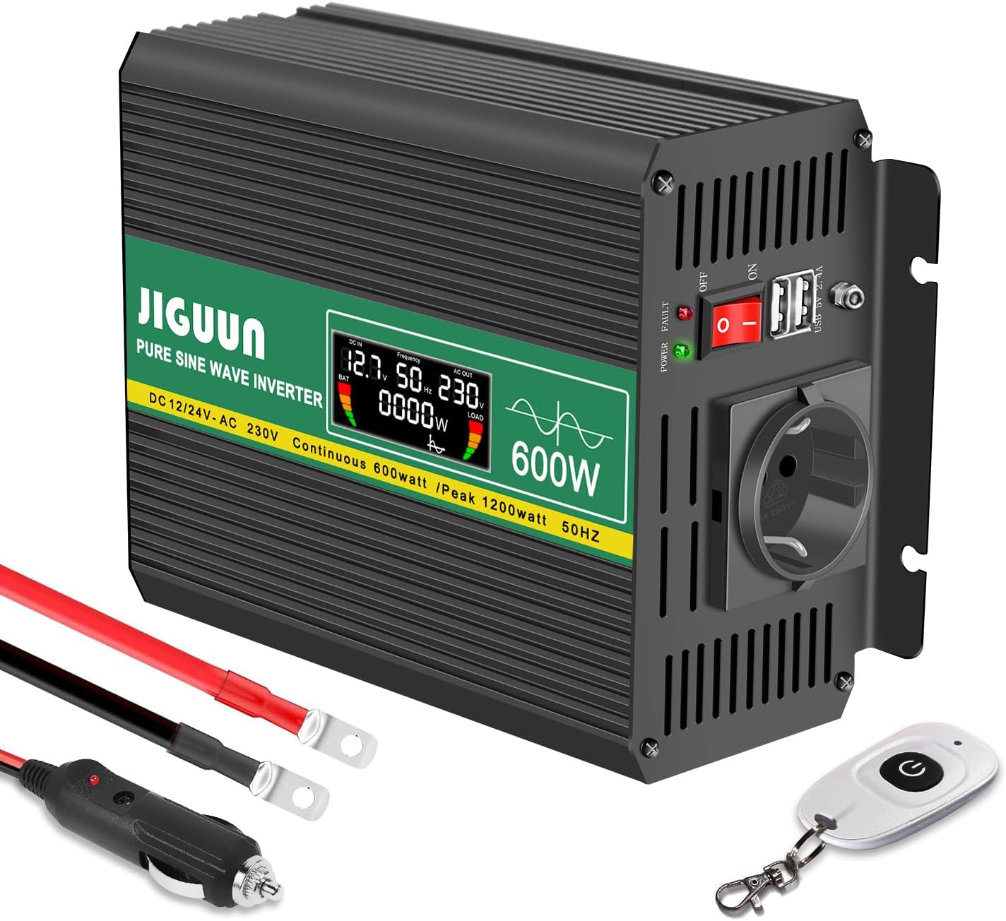 JIGUUN 600W inverter onda pura 12V/24V con display e telecomando 🔌