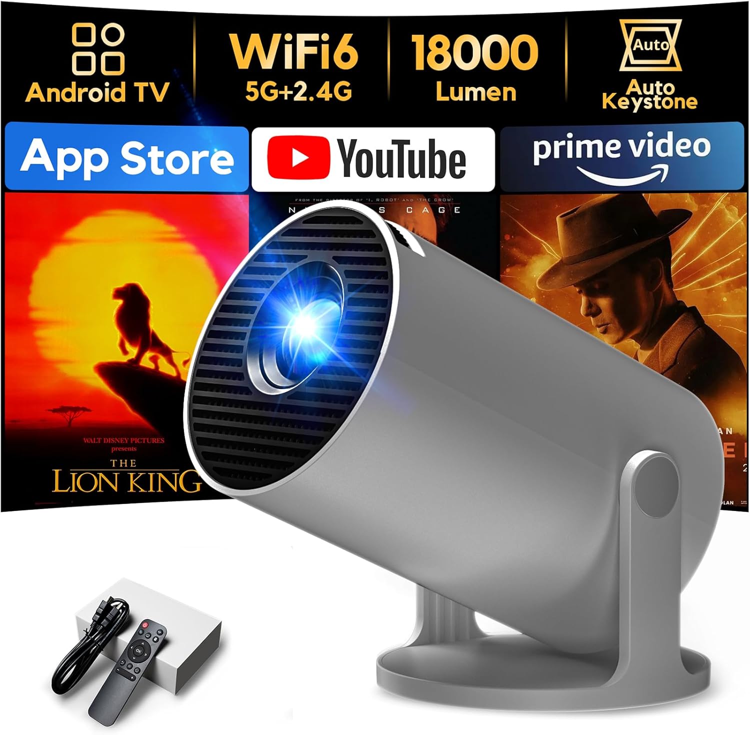 - Proiettore 4K HAPPRUN 1000 ANSI con Google TV, Assistente Google, Dolby e Wi‑Fi 6/Bluetooth 5.2
