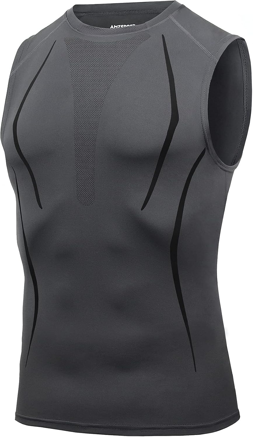 - AMZSPORT canotta a compressione da uomo senza maniche per base layer sportiva a asciugatura rapida