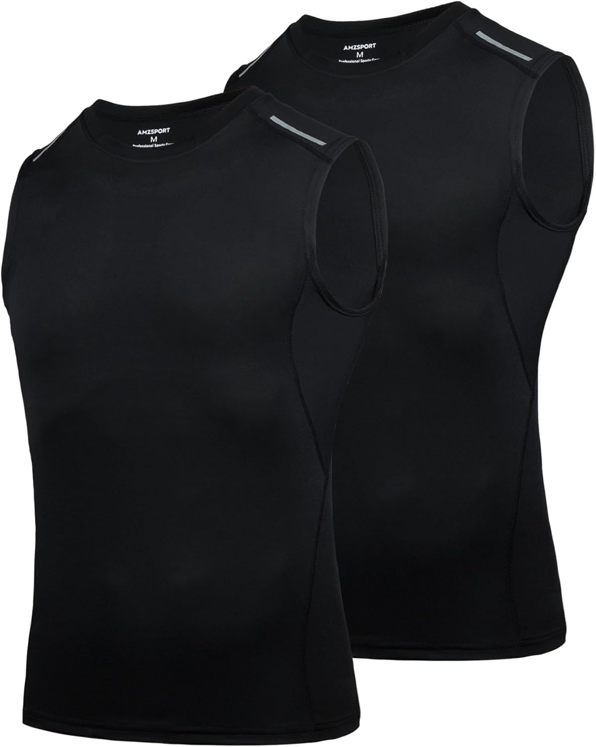 - AMZSPORT Canotta a compressione da uomo per sport, senza maniche, base layer a rapido asciugatura