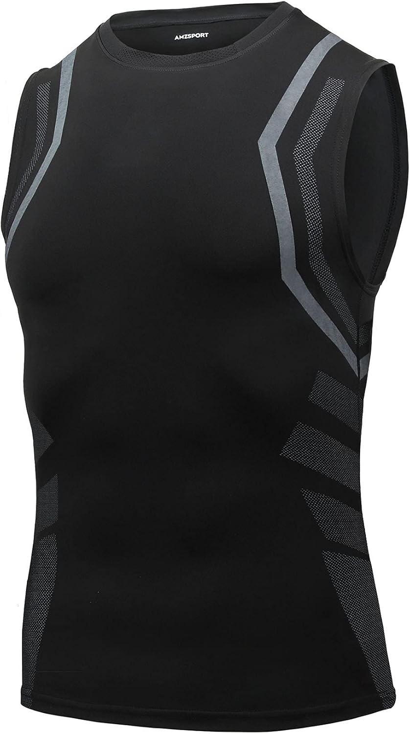 AMZSPORT Canotta Compressione Uomo a asciugatura rapida con logo riflettente