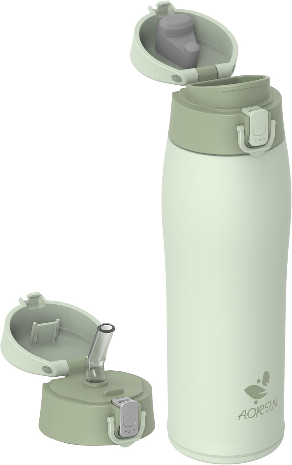 Il tappo è uno dei dettagli che più possono farti la differenza. Qui AORIN propone un meccanismo ad apertura “di un solo tocco” azionabile facilmente anche con una sola mano. Per chi corre avanti e indietro tra scuola, sport o camminate, è un vantaggio reale: apri, bevi, richiudi senza perdere tempo.