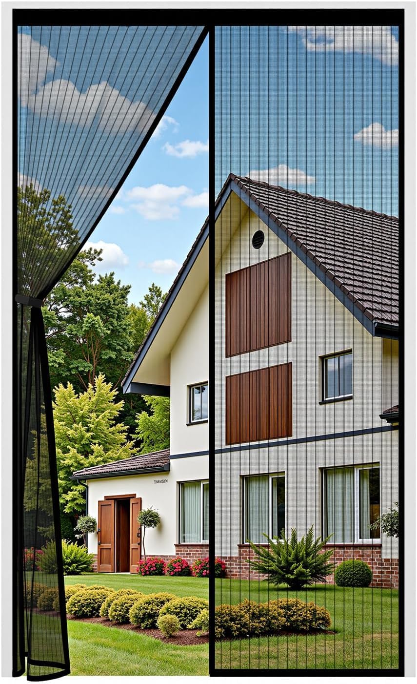 Un esempio concreto di utilizzo: immagina di aprire la porta per far entrare qualcuno o per andare in cortile. Passi, attraversi la tenda e, secondo quanto indicato, le calamite aiutano a ricomporre rapidamente la chiusura, riducendo la possibilità che insetti approfittino del tempo in cui la zanzariera resta aperta.