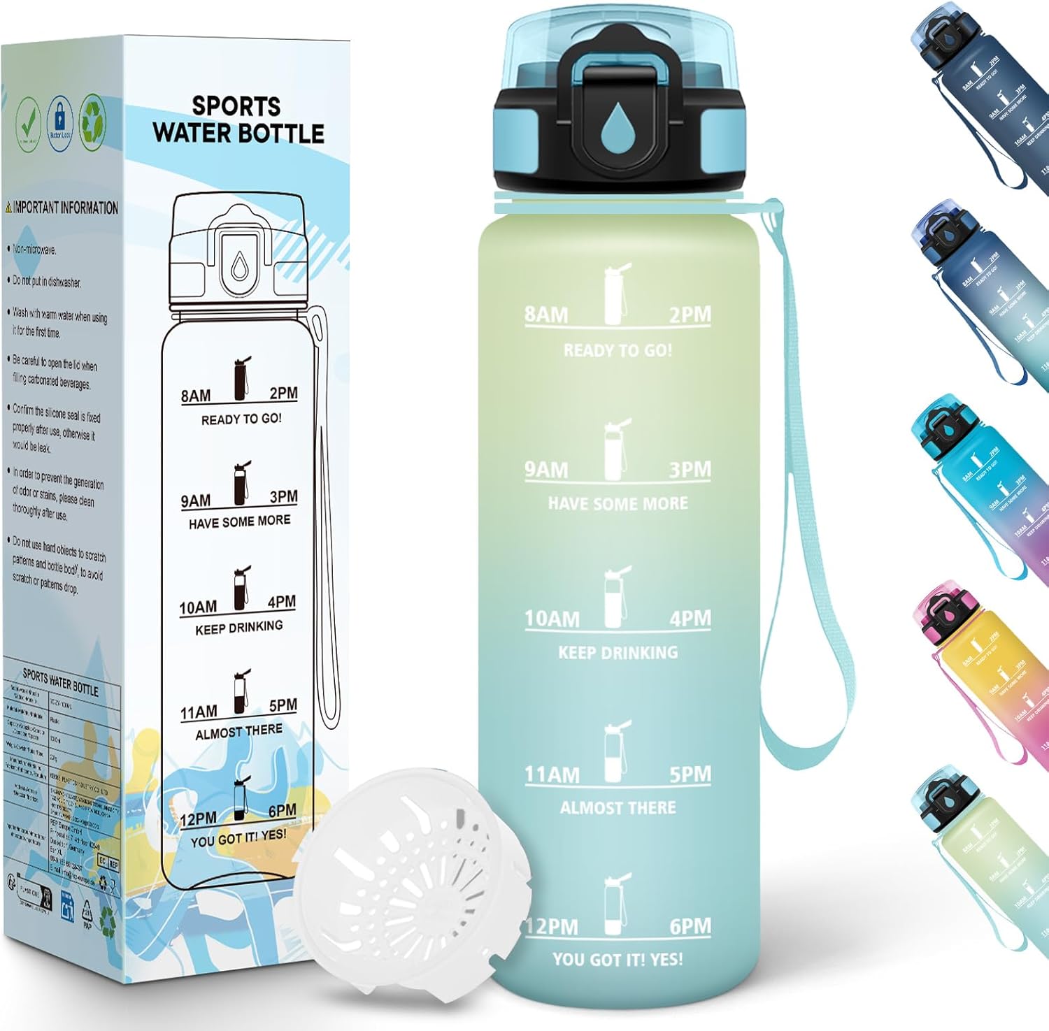La borraccia Baramumu è pensata per accompagnarti passo passo nel mantenimento di abitudini sane. L’indicatore del tempo rende visibile il consumo idrico del giorno, spingendoti a bere regolarmente senza ricorrere a pratiche complicate. Le citazioni stampate accanto alla scala temporale offrono una spinta motivazionale costante, contribuendo a migliorare la tua routine quotidiana. Se cerchi un accessorio pratico e stimolante, questa borraccia fornisce una risposta affidabile per idratazione, energia e benessere generale. La forma ergonomica facilita la presa, mentre la chiusura ermetica riduce al minimo il rischio di perdite durante gli spostamenti, dalla palestra all’ufficio. In più, la varietà di colori disponibili permette di abbinarsi allo stile personale senza rinunciare alla funzionalità. 🔵🟢