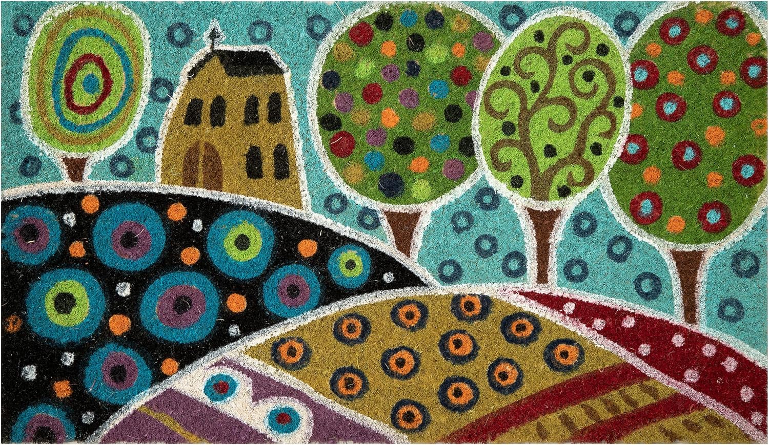 - Baroni Home Zerbino da esterno in cocco con base PVC antiscivolo dipinto a mano, Paesaggio 5 (70x40x2 cm)
