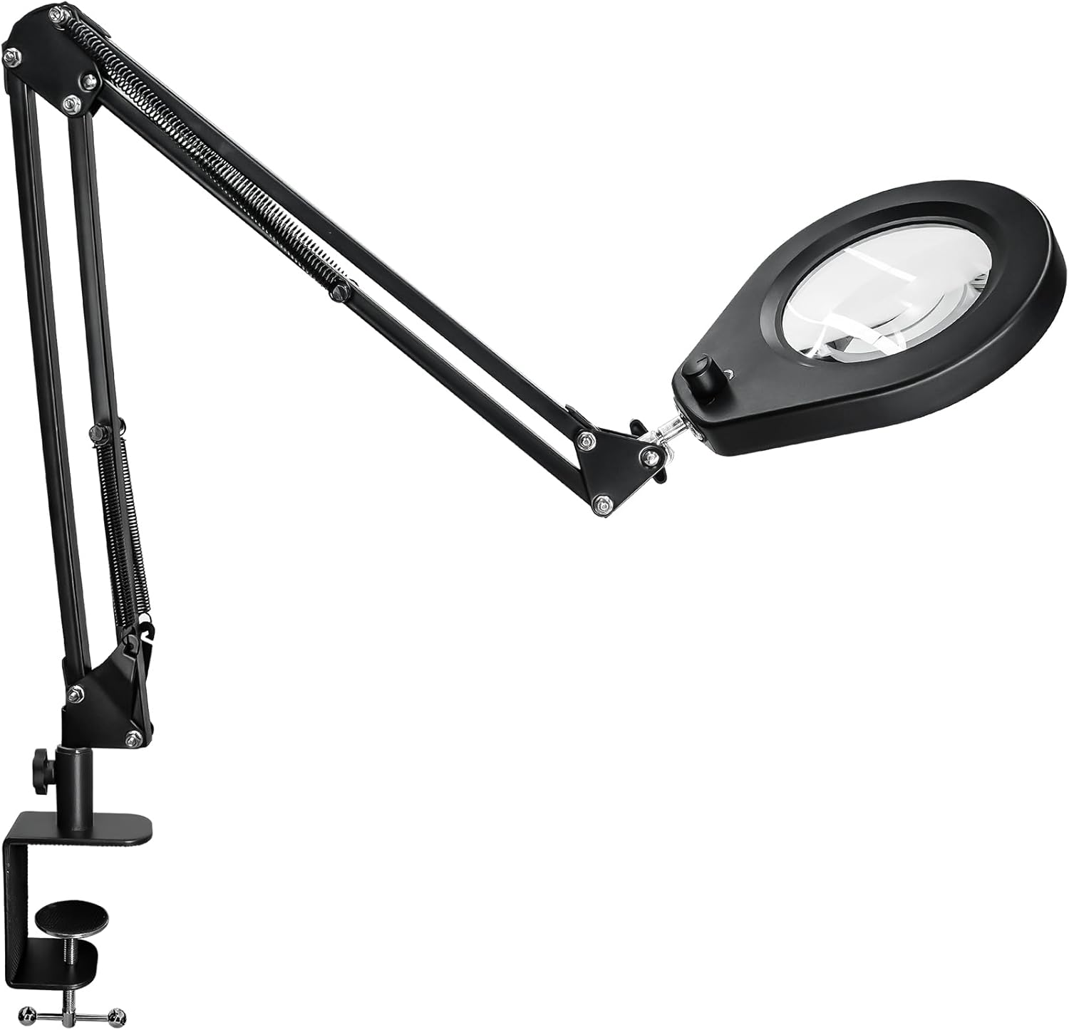 Conviene se fai lavori su dettagli e vuoi combinare ingrandimento con illuminazione gestibile (intensità e 5 colori), mantenendo il set-up flessibile grazie al braccio girevole e al morsetto con cuscinetti in gomma.
