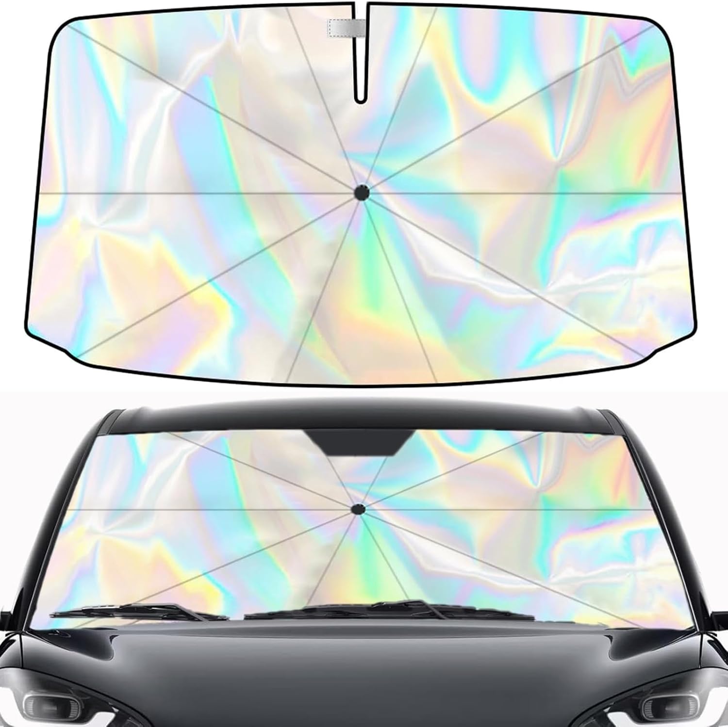 Prima cosa: l’apertura centrale. Se ti sei mai trovato con il classico parasole che lascia infiltrazioni di luce attorno al retrovisore, qui l’idea è chiara: incastrare quella zona in modo più ordinato per arrivare a una copertura più completa.