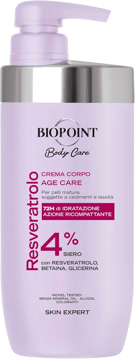 Se cerchi una crema corpo pensata per pelli mature e che punti su idratazione prolungata e comfort quotidiano, la Biopoint Age Care al Resveratrolo è una di quelle proposte “da routine” che, sulla carta, ha senso provare. La promessa principale ruota attorno all’idratazione (con indicazione di 72 ore) e a un effetto ricompattante/elasticizzante, con una formula arricchita da attivi come resveratrolo, betaina, glicerina e olio di mandorla.