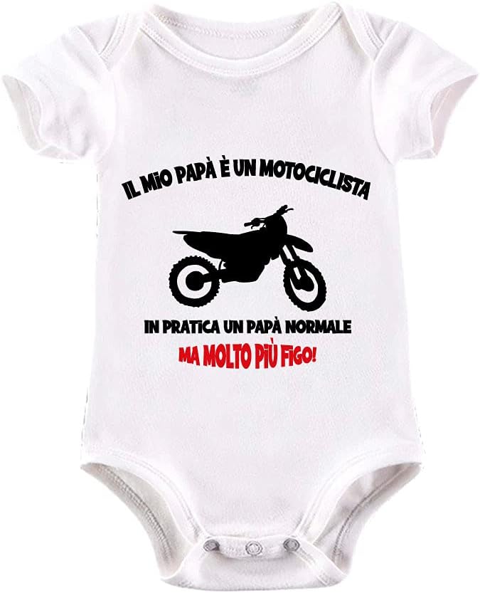 Body neonato La Ruotante in 100% cotone a manica corta con stampa motociclista, idea regalo nascita