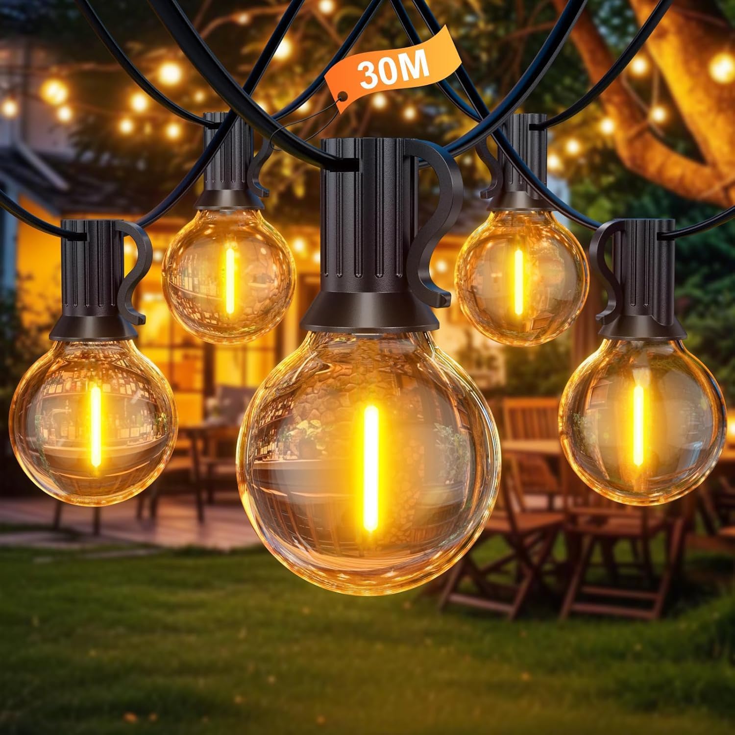 Se stai pensando a una decorazione luminosa per terrazza, giardino o gazebo, qui l’idea è semplice: creare atmosfera senza complicarti troppo la vita. Questa catena luminosa BokiHuk da esterno arriva già predisposta con più lampadine G40 e punta su un impianto pensato per l’uso fuori casa, con alimentazione a bassa tensione sulle singole lampadine.