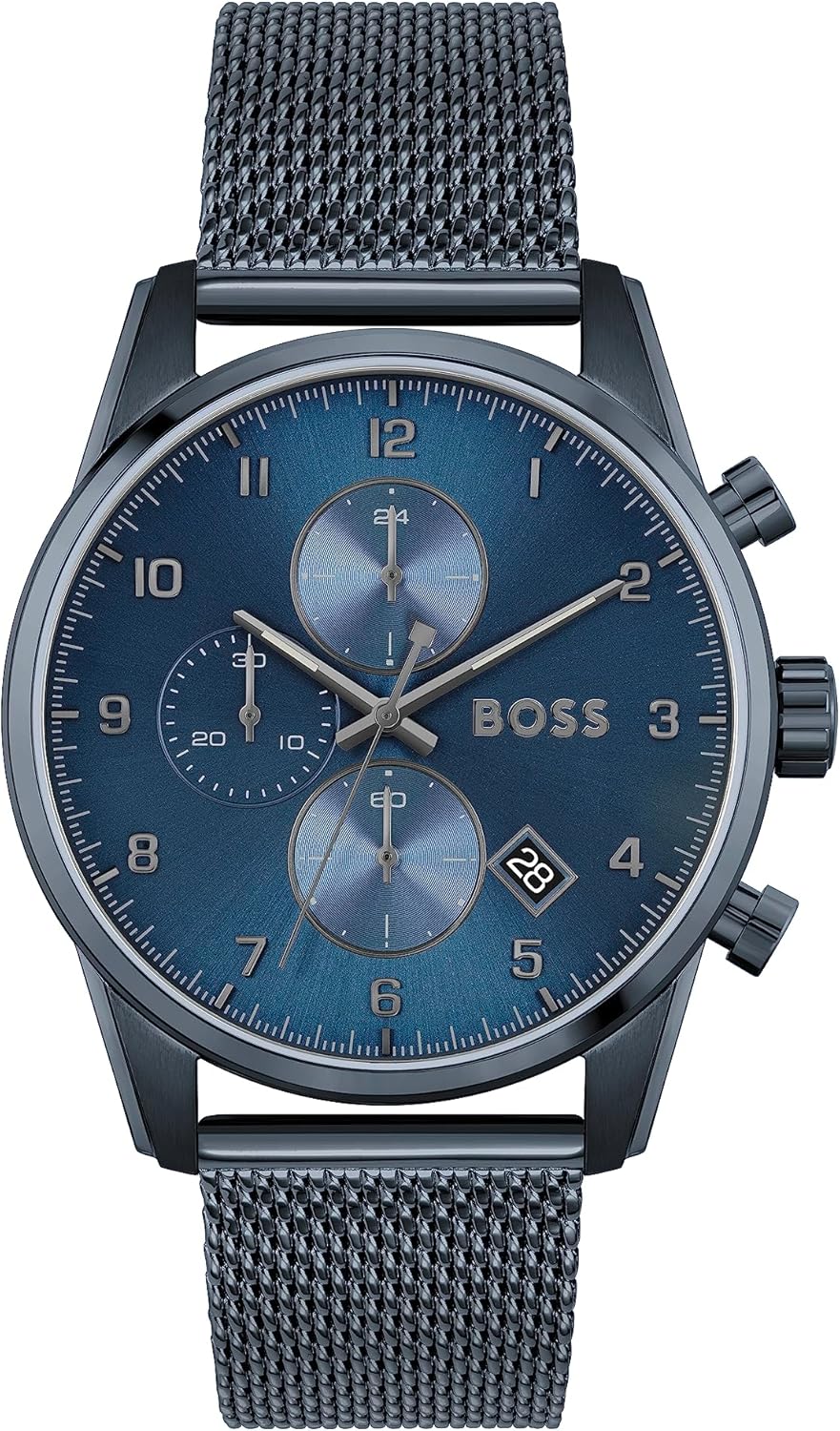 Il BOSS SKYMASTER è un orologio da uomo con movimento cronografo al quarzo e funzione data, pensato per chi cerca un accessorio che unisca precisione, stile sportivo e versatilità quotidiana. La cassa da 44 mm si abbina a un quadrante blu vivace, mentre il cinturino in maglia metallica di acciaio inox placcato ionico blu aggiunge un tocco moderno. Non è perfetto per immersioni, ma offre una resistenza all’acqua di 5 ATM che permette di sopportare pioggia, docce rapide o nuoto non intenso.