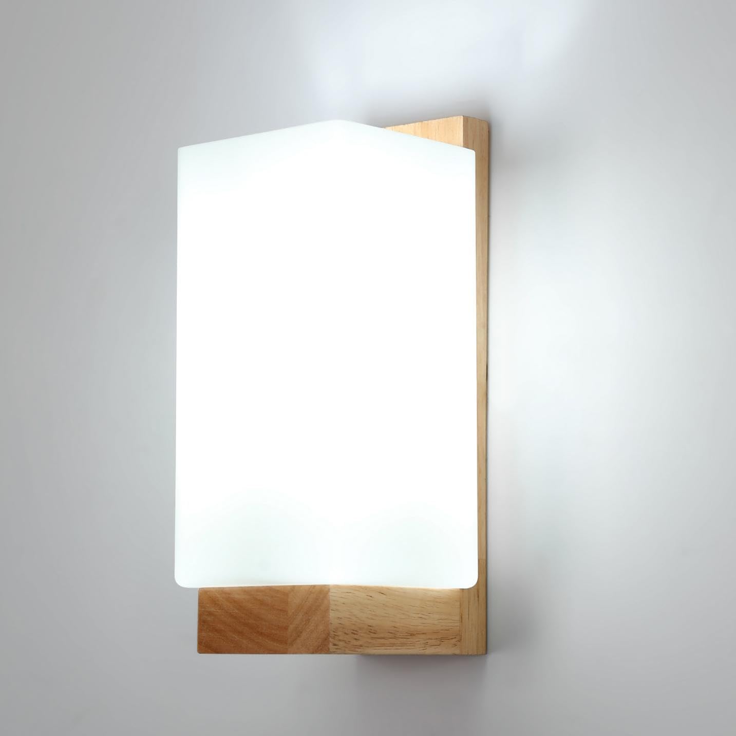 Comely Applique da parete in legno vintage con paralume in vetro e attacco E27