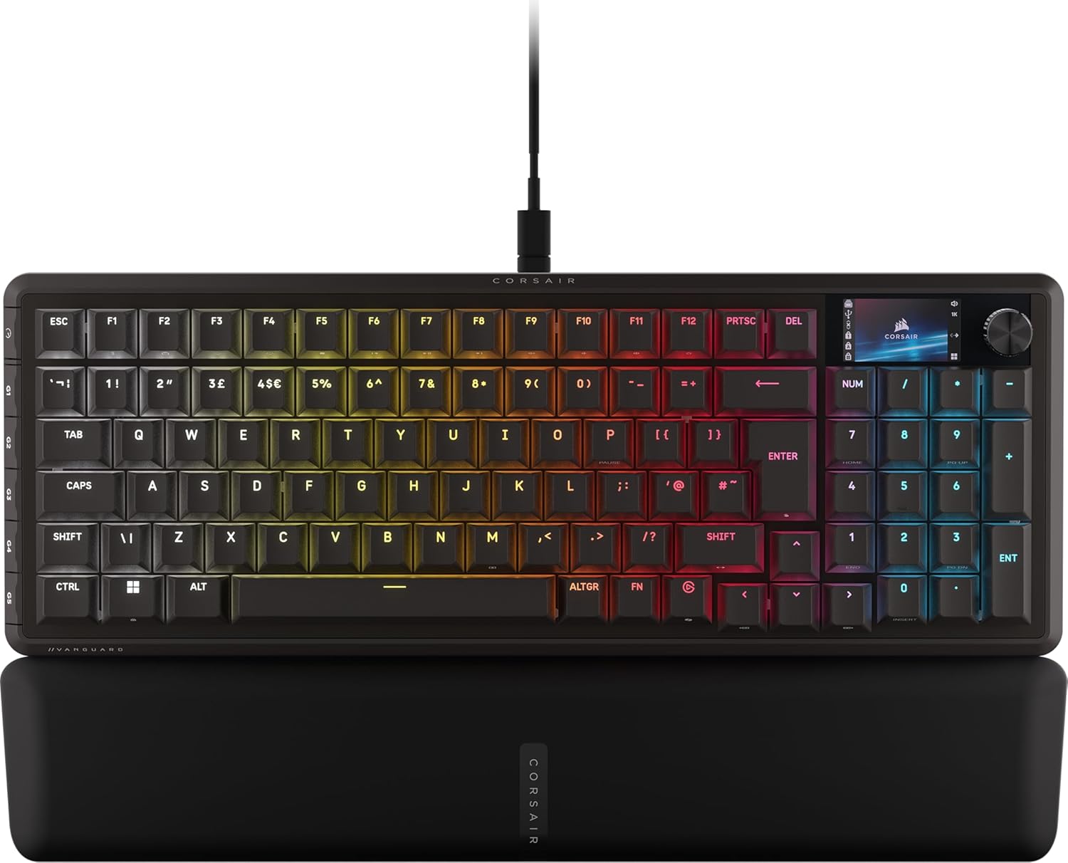 Corsair VANGUARD 96 Tastiera meccanica gaming cablata layout al 96% QWERTY IT (MLX Plasma, 8.000 Hz) con LCD e Virtual Stream Deck – Nero