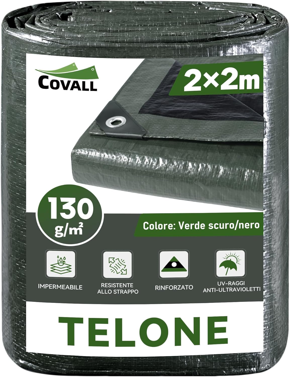 - COVALL telo telone impermeabile 2x2 m in HDPE 140 g/m² con occhielli rinforzati