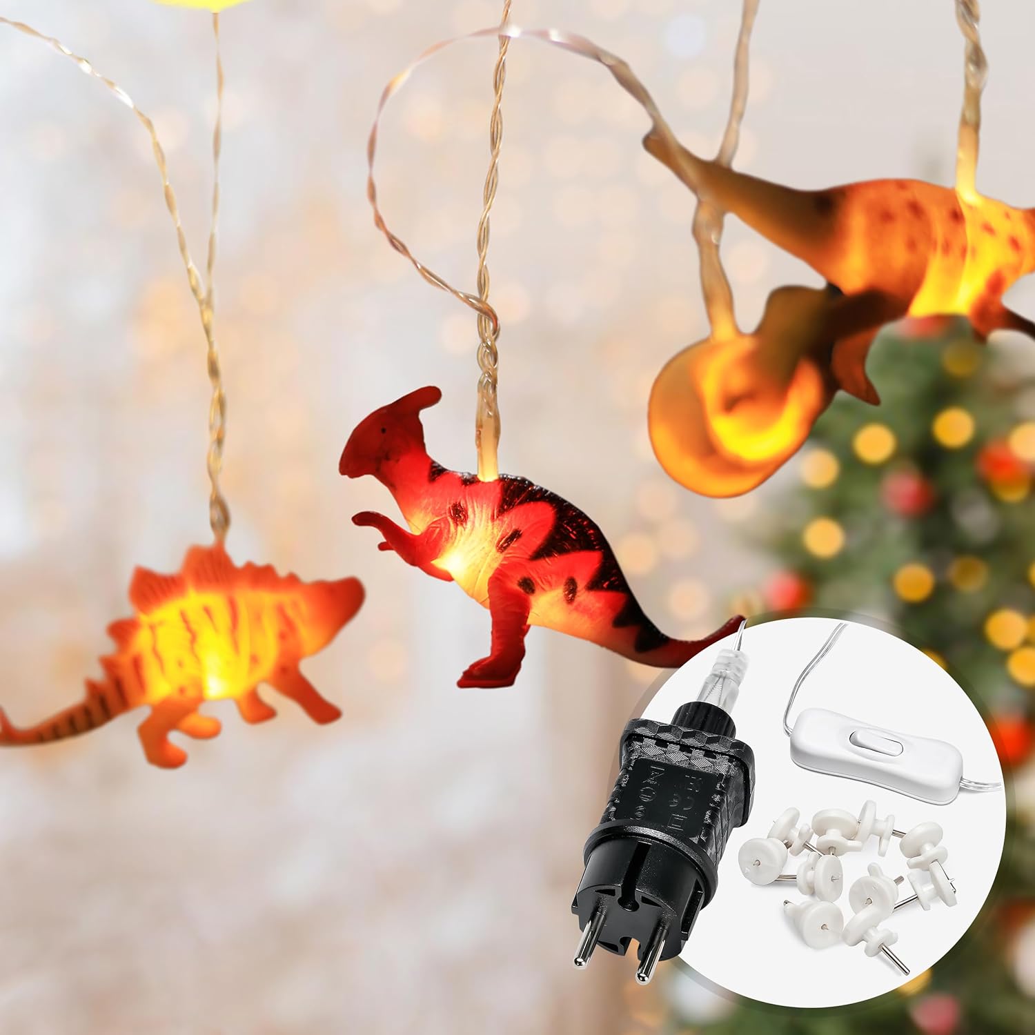 CozyHome Lucine LED decorative a forma di dinosauro, 4 metri con spina e 12 figure