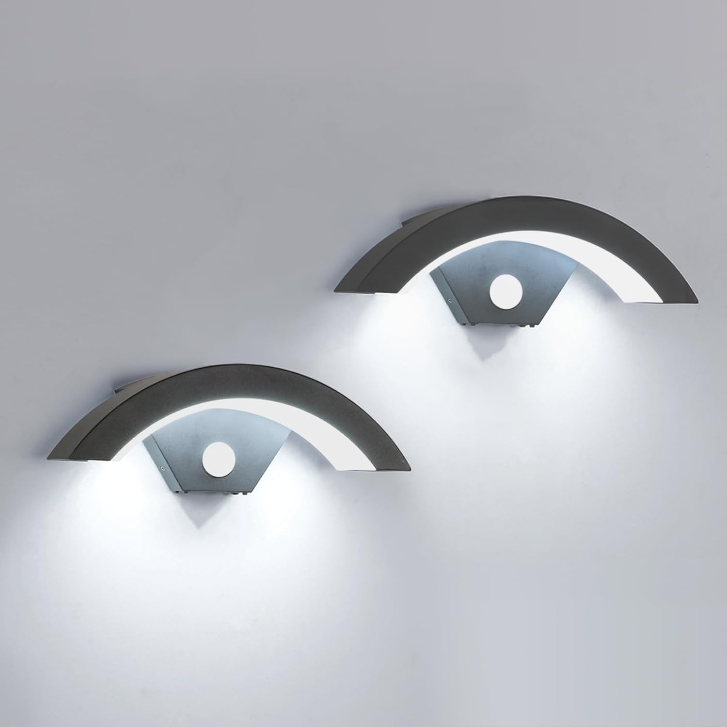 Set da 2 applique da esterno LED con sensore di movimento 24W IP65, design a U nero, 6500K (luce bianca fredda)