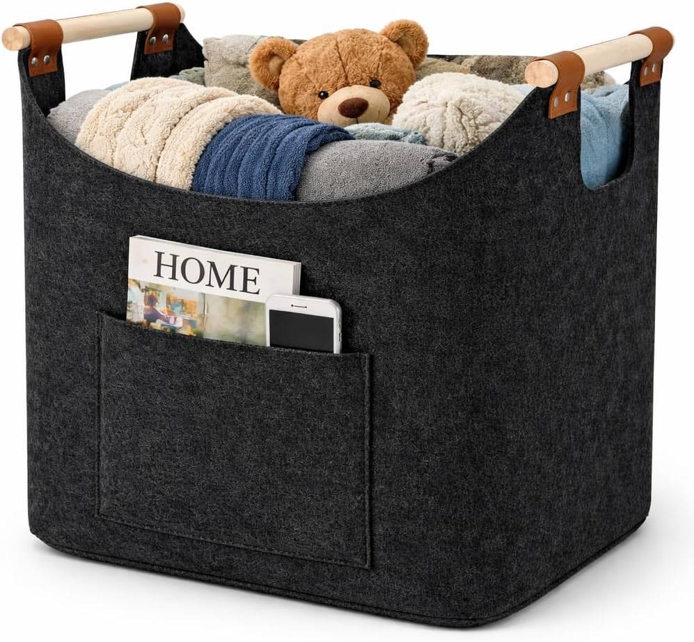 Domus Prime Borsa Portalegna pieghevole salvaspazio in feltro (cesto in legno) fino a 14 kg, 57 L, dark grey