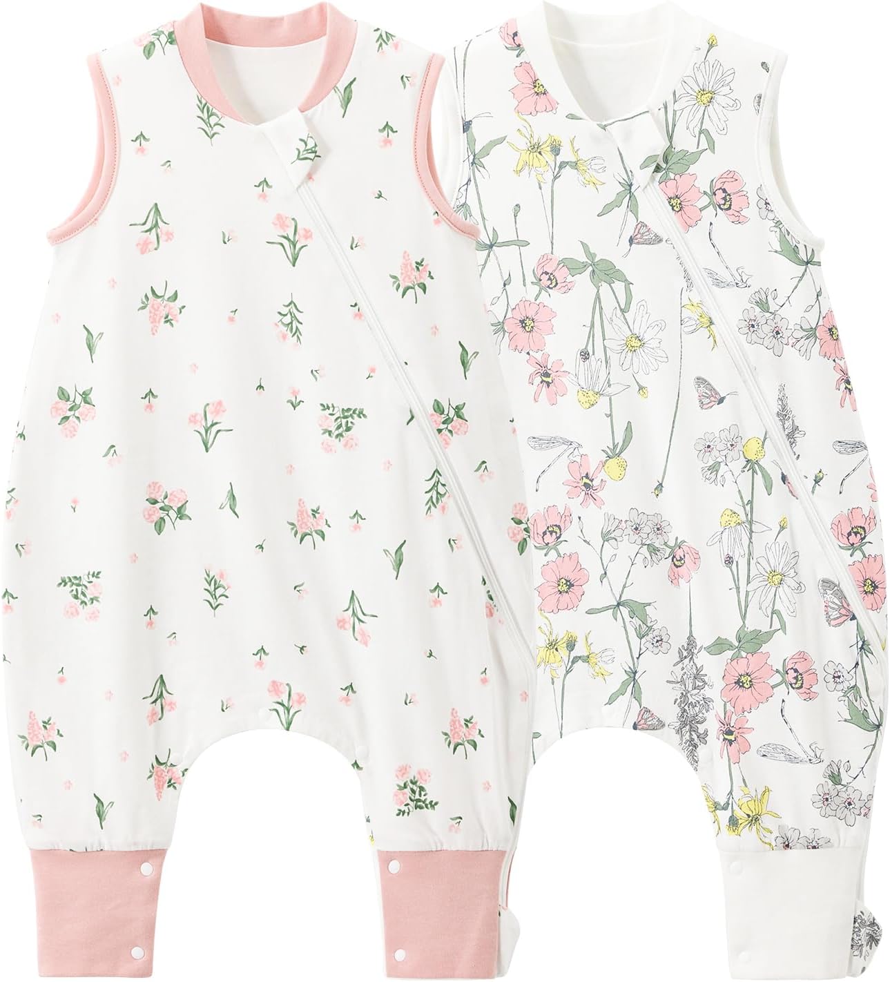 Duomiaomiao Sacco nanna con piedi – confezione da 2, cotone leggero 0,5 TOG per bambini 1–2 anni