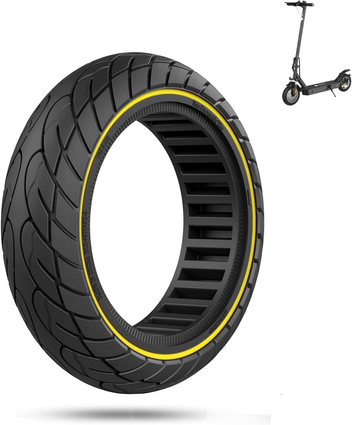 Questo ricambio è un pneumatico pieno di formato 10 x 2.125, progettato come antiforatura per ruote da 10 pollici. Sul lato comfort e guidabilità, la gomma piena viene descritta con una struttura interna a nido d’ape: sulla carta serve a renderlo più morbido e leggero, aiutando ad attutire le irregolarità della strada.