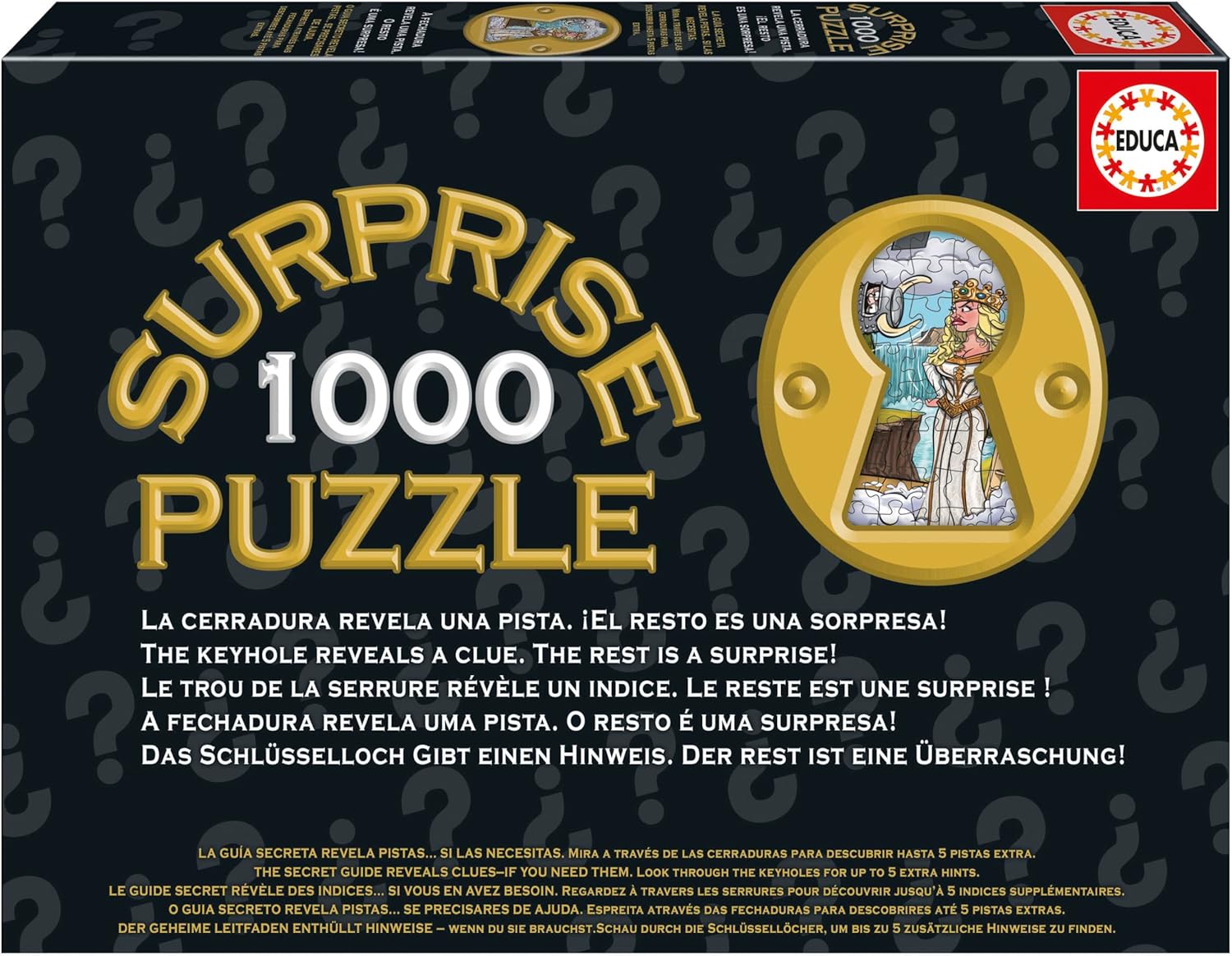 Se ti stai chiedendo quale puzzle prendere quando vuoi qualcosa di più di una semplice immagine da comporre, questo Educa Surprise Nights punta proprio su quell’effetto lì: non sai che cosa stai formando finché non completi il lavoro. La scatola, però, non resta completamente “muta”. C’è un lucchetto speciale che, a seconda di come lo usi/ti guida, rivela un indizio (e può arrivare fino a 5 indizi extra tramite la parte dedicata alla guida).