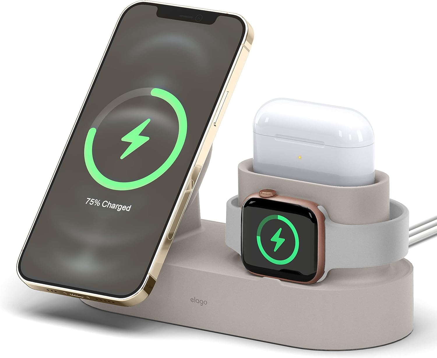 elago Stazione MS Trio 2 compatibile con MagSafe: hub di ricarica per iPhone, Apple Watch e AirPods (cavi non inclusi)