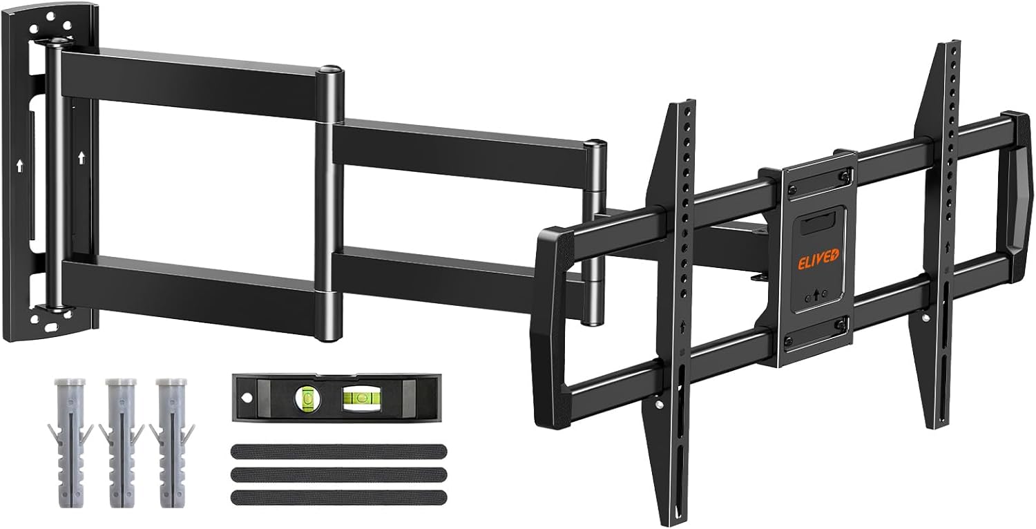 ELIVED lo propone soprattutto come supporto per pareti/zone d’angolo. I “bracci lunghi” e articolati, secondo la descrizione, consentono di piegare o posizionare i bracci in modo da adattarsi all’angolo e aumentare la gamma di visuale. Se la tua TV sta in una configurazione dove la gente guarda da più angolazioni (o dove l’angolo limita la linea dritta), questo tipo di soluzione tende a fare la differenza.