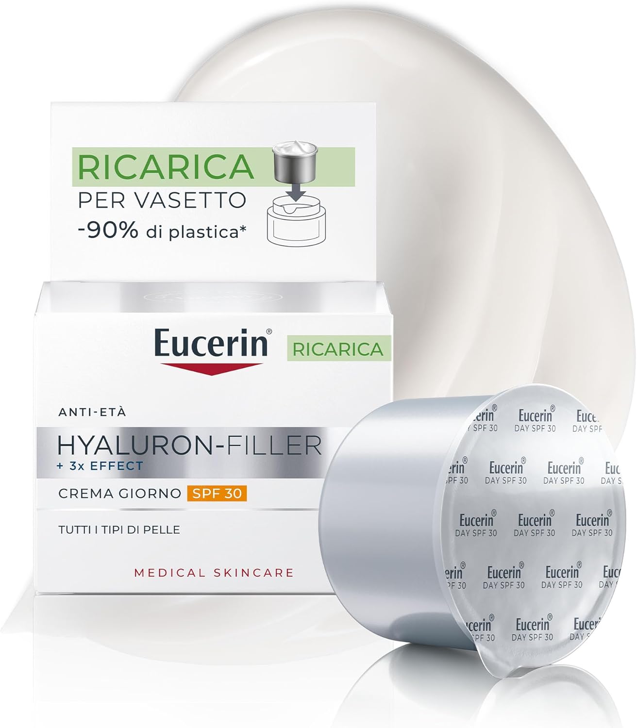 Se ti interessa una crema viso antirughe da giorno che faccia anche da protezione solare, Eucerin Hyaluron-Filler Refill SPF 30 è un tipo di scelta “pratica”: la formula è pensata per idratare e contribuire a rendere le rughe meno visibili, mentre l’SPF aiuta a prevenire il fotoinvecchiamento legato ai raggi UV. In più, il formato refill porta con sé un aspetto interessante dal punto di vista ambientale.