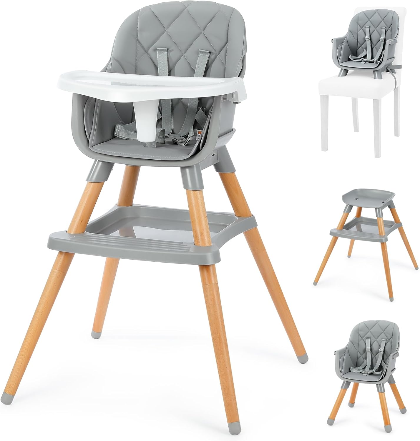 Le gambe in legno di faggio massiccio e le linee di seduta sottili contribuiscono a un aspetto più elegante rispetto ai seggioloni più “ingombranti” visivamente. Il colore grigio con ripiano, insieme ai toni neutri, dovrebbe integrarsi bene con ambienti moderni.