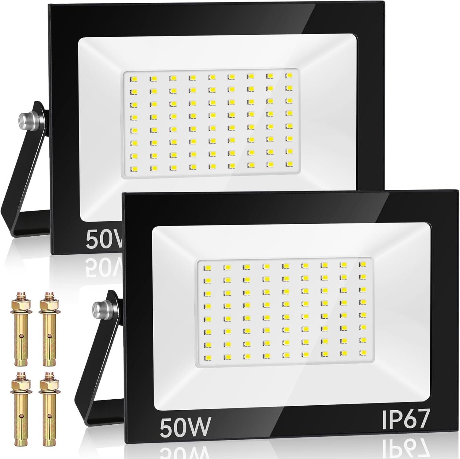 Faretto LED da esterno 50W da 5000 lm 7000K IP67 (2 pezzi) con staffa regolabile a 180°