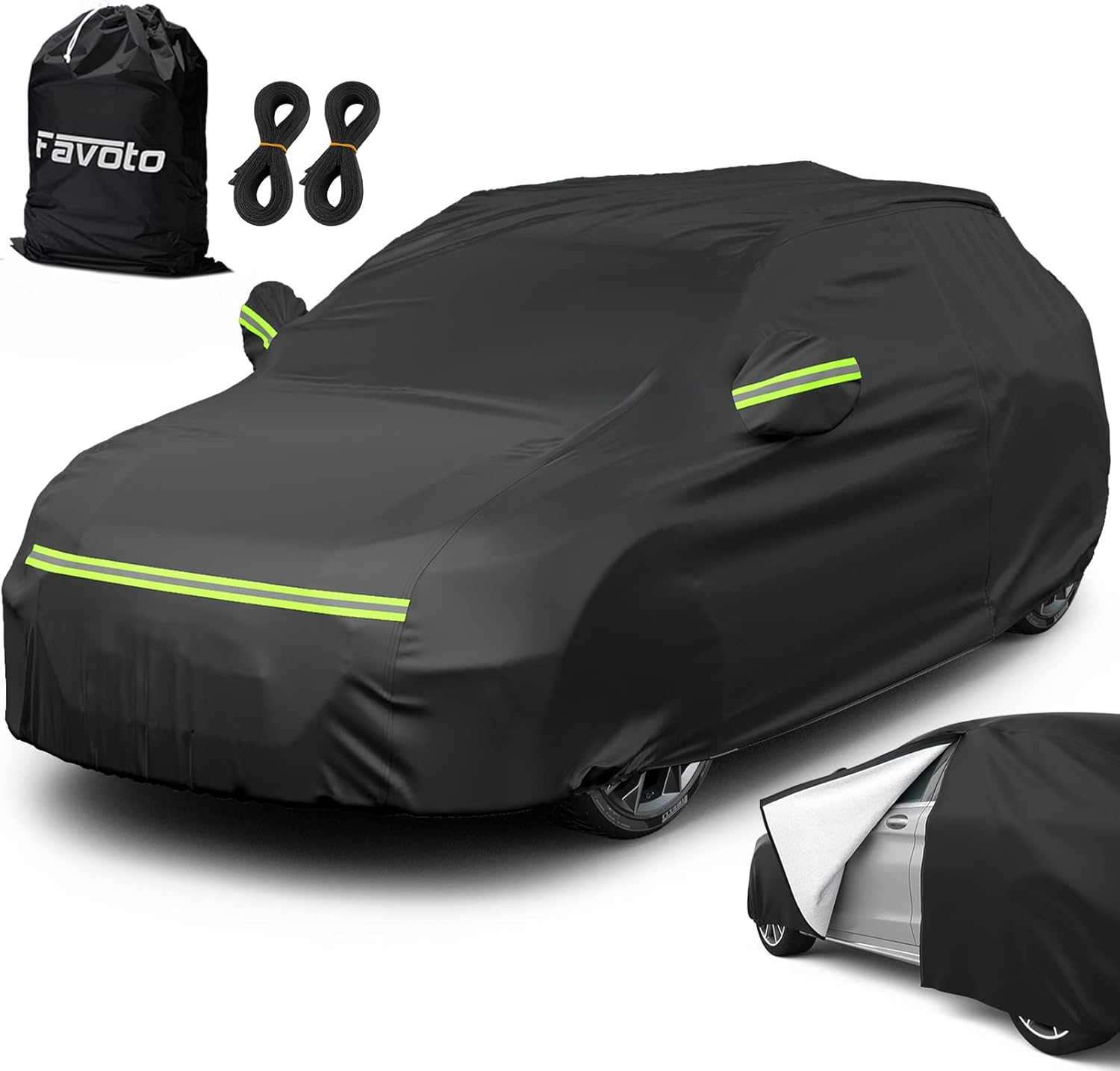 Favoto Copriauto Felpato Invernale Impermeabile per SUV Compatto – Protezione in PEVA e Cotone con Zip Laterale (460x180x170 cm) - Nero