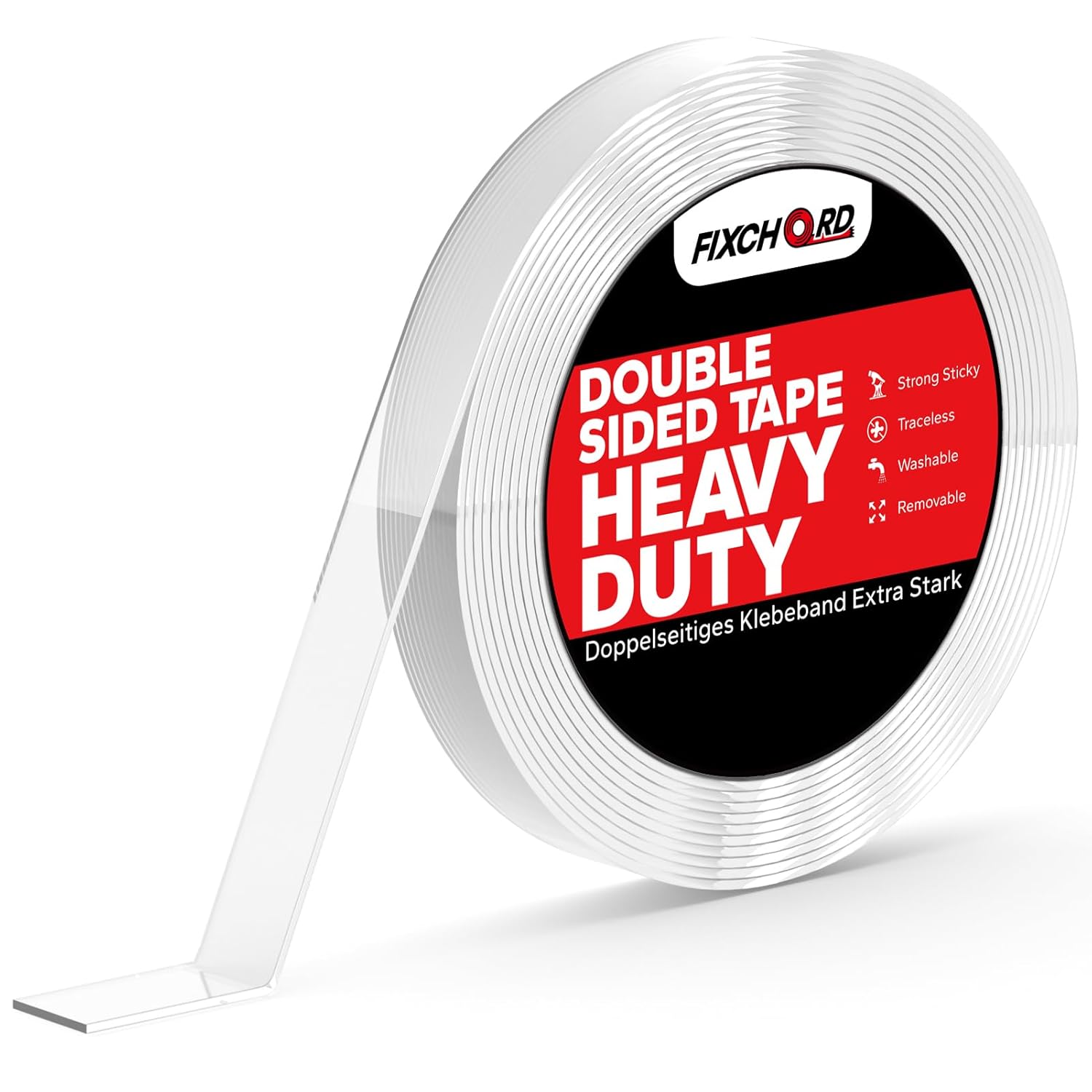 - FIXCHORD Nastro biadesivo extra forte trasparente rimovibile (2 rotoli) in acrilico impermeabile