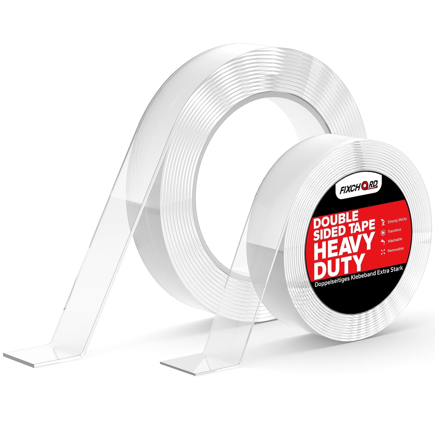 FIXCHORD Nastro biadesivo extra forte trasparente rimovibile (2 rotoli) in acrilico impermeabile
