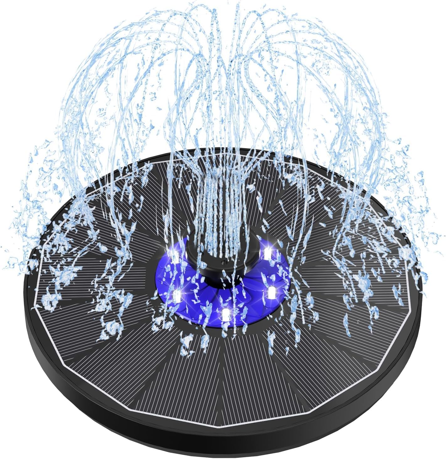 Fontana solare SZMP con pompa da 3,5W, batteria 2200mAh, 6 LED e 7 ugelli per bagno uccelli, laghetto e piscina