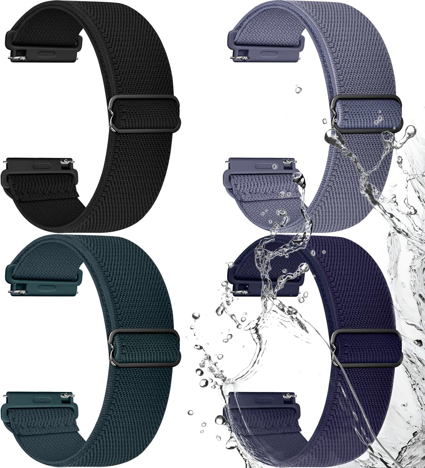 Fullmosa cinturino elastico 20 mm impermeabile con sgancio rapido per Samsung Galaxy Watch 7 FE/6/5/4 e altri compatibili, 4 pezzi
