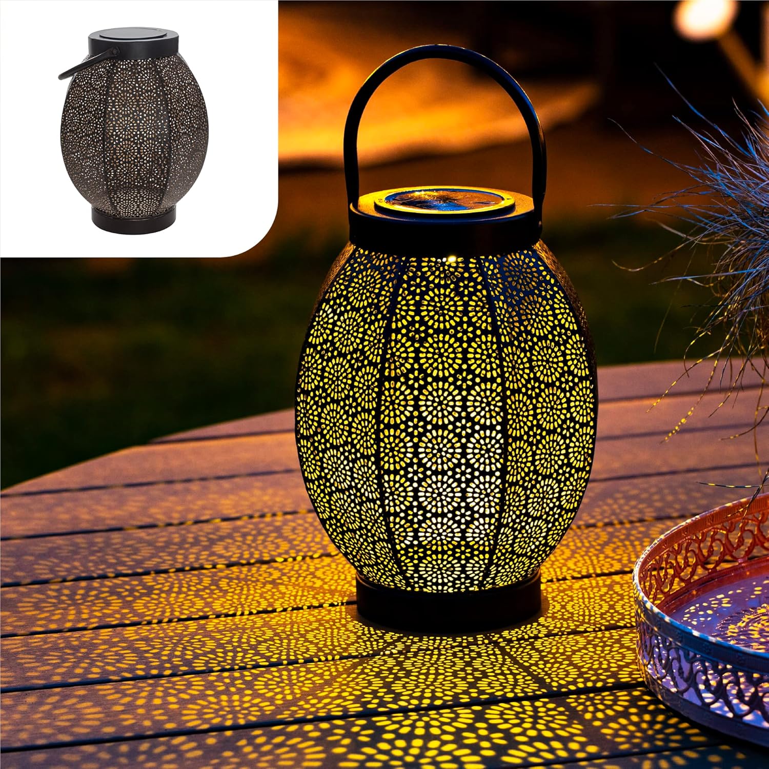 Conviene se vuoi una lanterna solare da esterno con look elegante (nero e oro) e un effetto luce decorativo a fiore, senza installazioni complicate. Se ti interessa creare atmosfera più che ottenere una luminosità intensa, allora rientra bene nel tipo di acquisto “pratico ma d’effetto”.